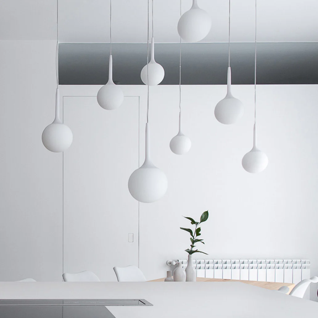 Castore features a hand-blown white glass spherical diffuser with a removable luminous stem that creates a gentle transition from focused to ambient light. Crafted with zamac base, thermoplastic resin stem, and opal glass, it emits a soft, warm glow ideal for creating tranquil atmospheres in residential, hospitality or commercial spaces. Available in 4 sizes. Made in Italy by Artemide.