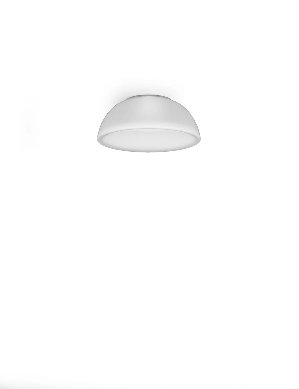 Infinita is an elegant collection of flush mount lights with mouth blown murano glass shades and metal bases. Infinita can be installed as ceiling or wall light. The shape of the satin glass diffuser evenly distributes light within a space. Available 3 sizes with satin white finish.