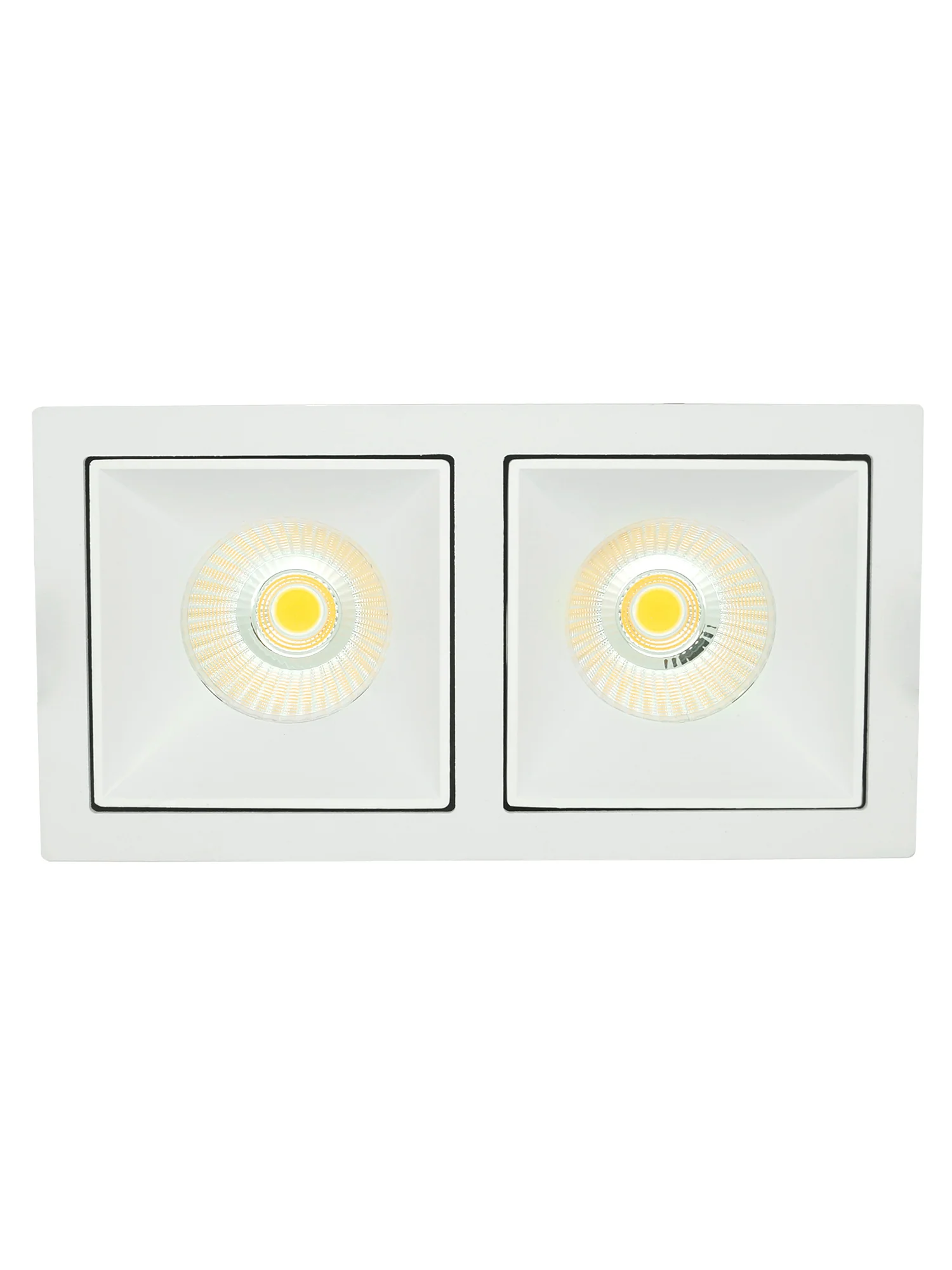 Rubic 2 Rectangular downlight in white finish. 2 x CREE 12w LED, 3000k, 2 x 800lm, CRI 90, dimmable with 38 degree beam spread. Driver supplied. Ideal for contemporary residential and commercial projects with bulk quantities available to order.
